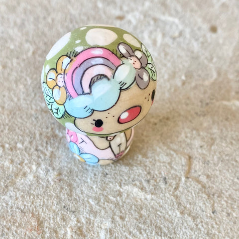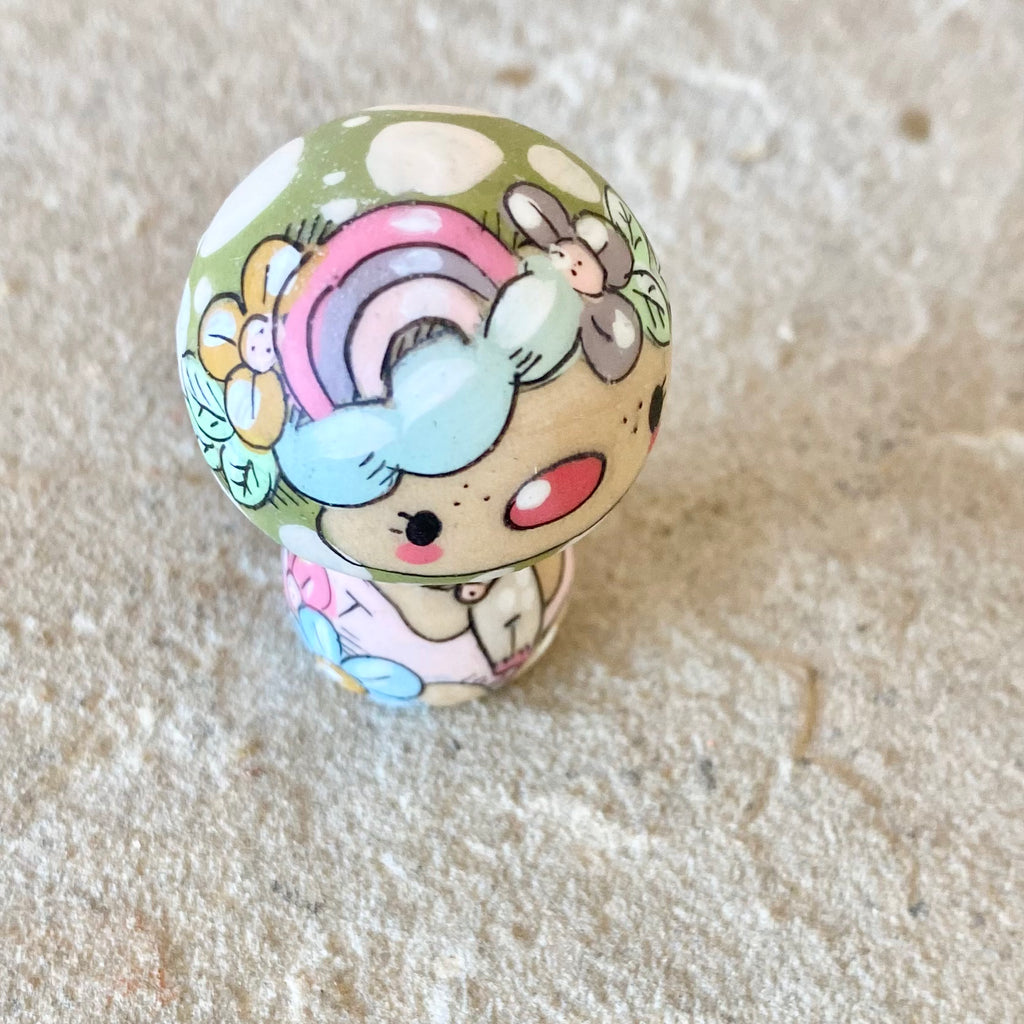 1.4” Tiny Round Mushroom: Olive Rainbow Unicorn