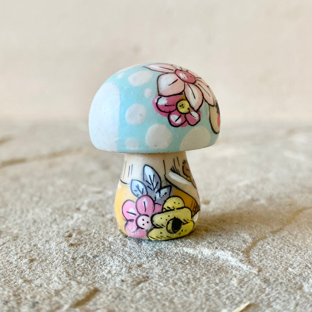 1.4” Tiny Round Mushroom: Sky Blue Bear Cub