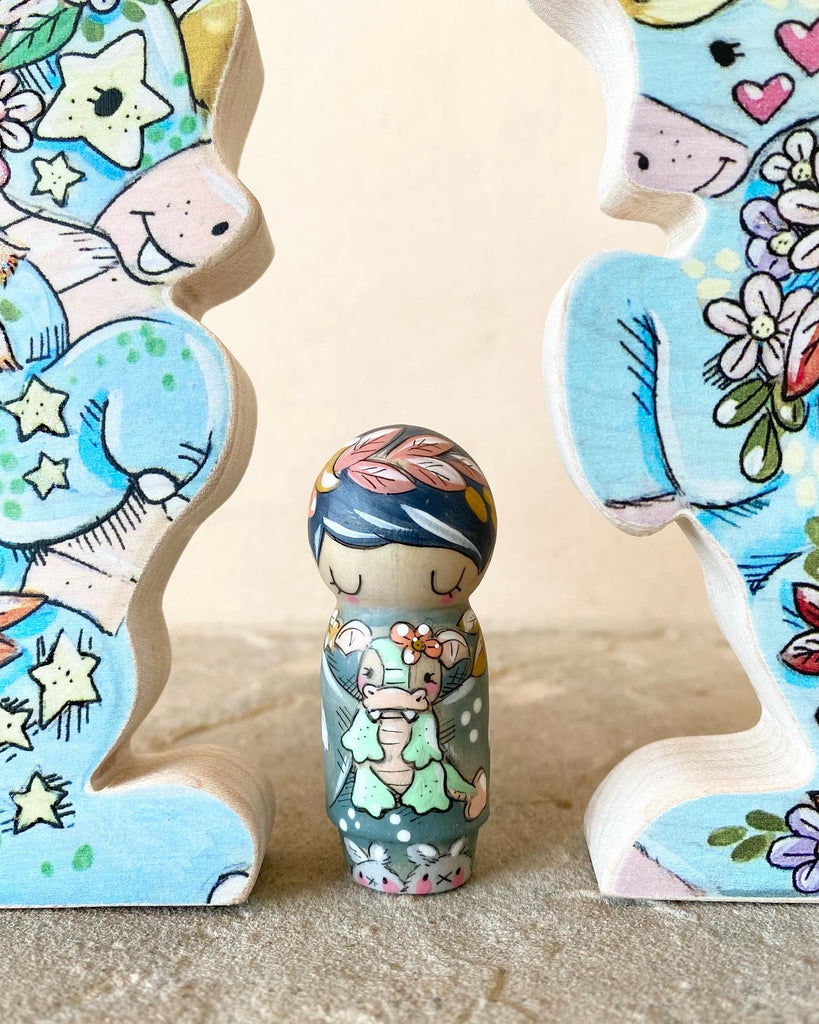 *Original* 2.25” Animal Guardian Boy with Long Hair: Dragon