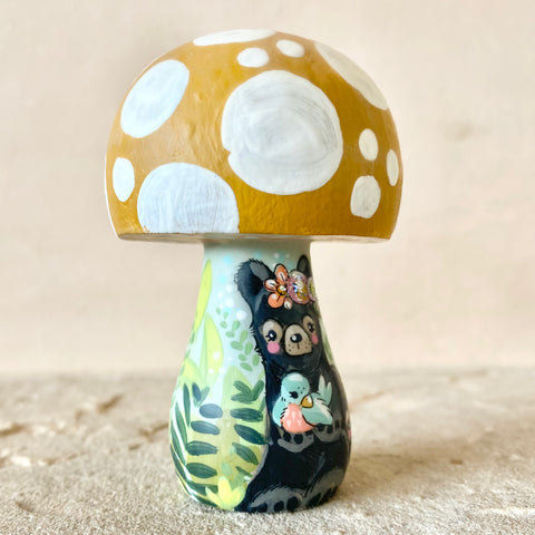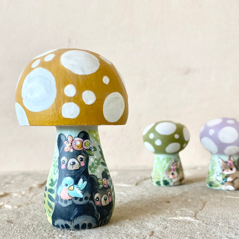 3.25” Ochre Mushroom with Mama Bear + Cub