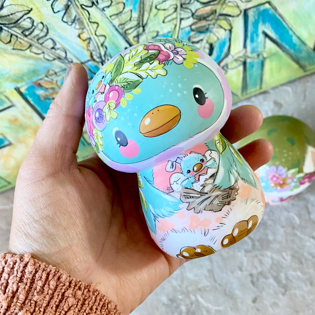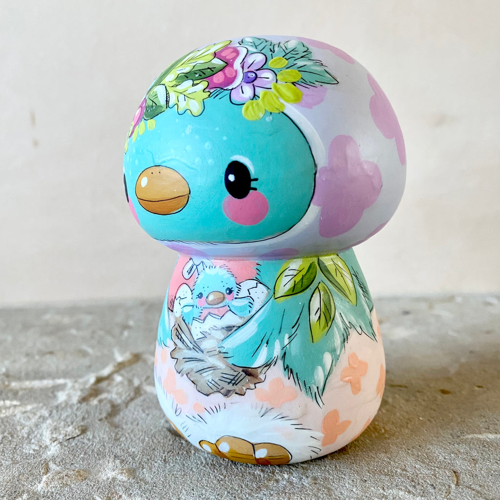 (Reduced!) 3.5” Lavender Bonnet Bluebird with Baby