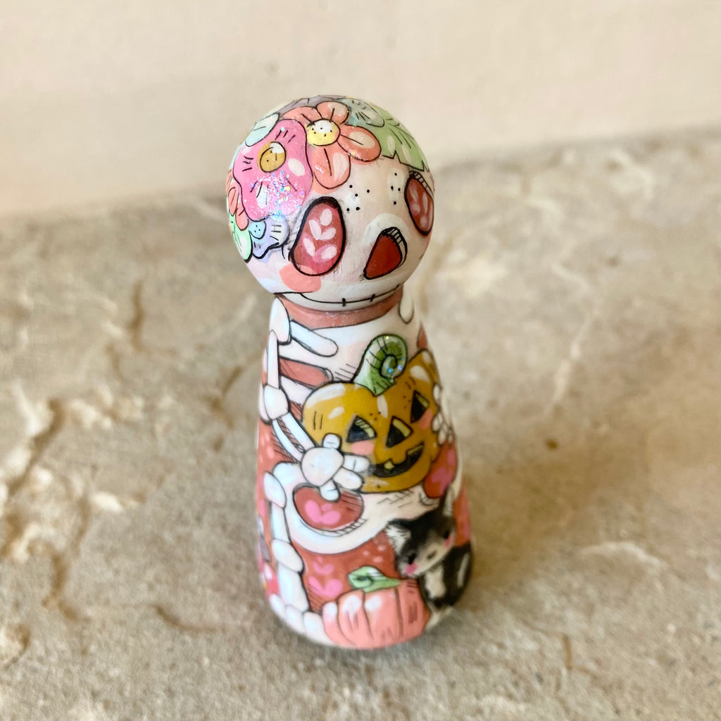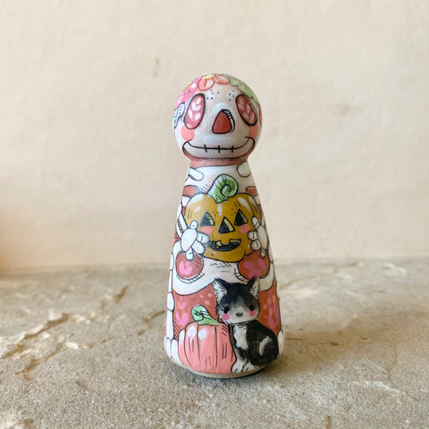 3.5” Skeleton with Pumpkin and Cat