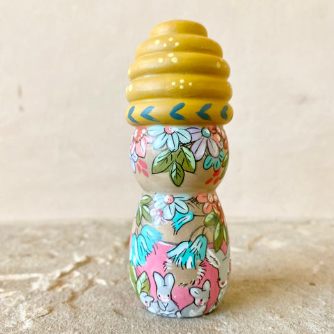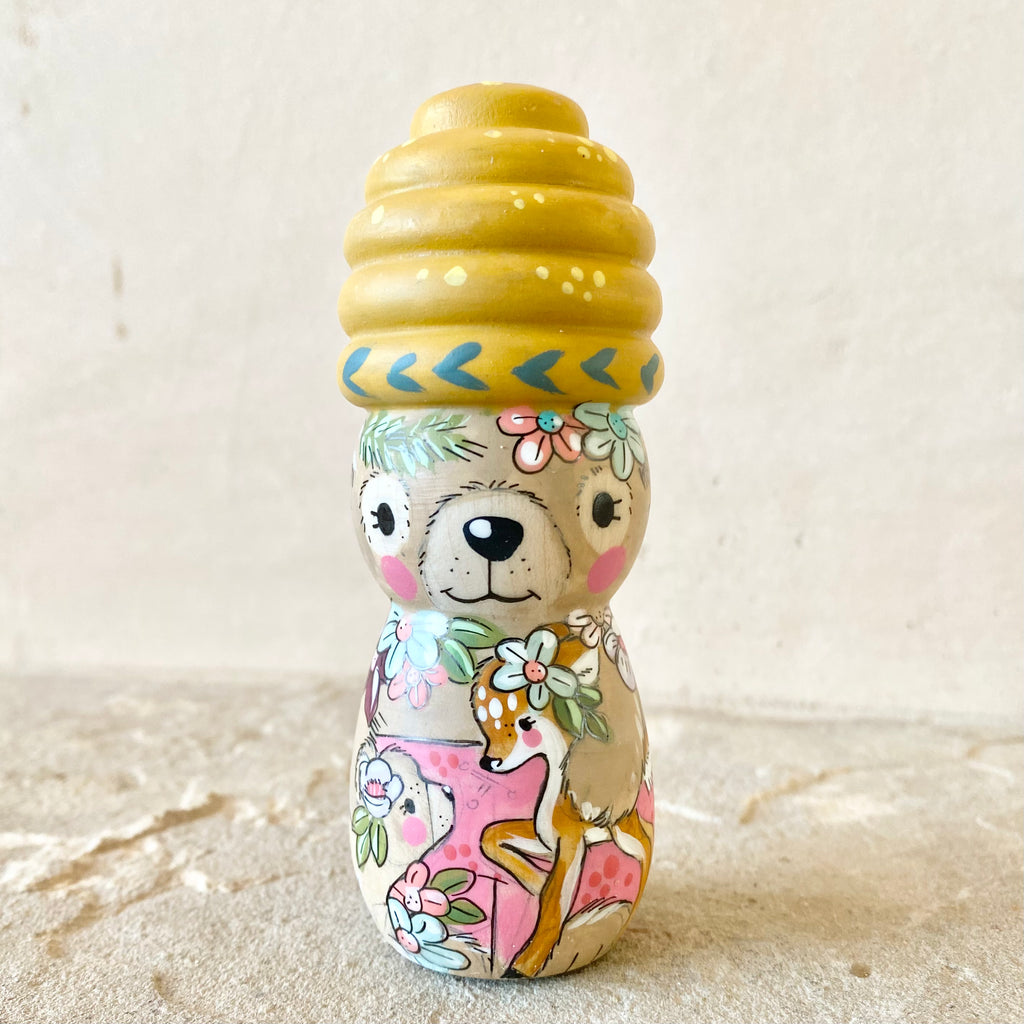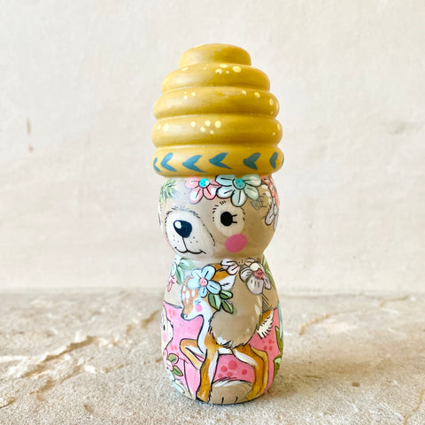 4” Brown Bear with Ochre Beehive Bonnet