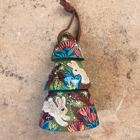 Hand painted with a Bunnies Leaping through a Frosty Field
