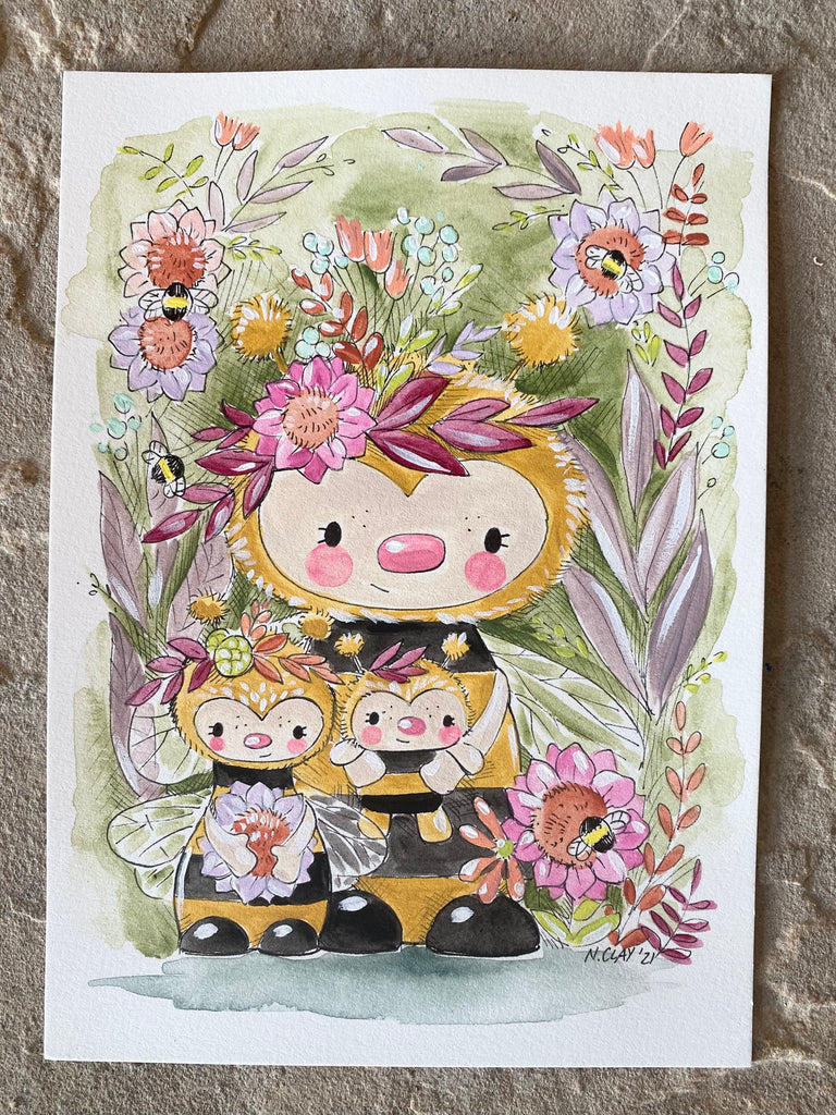 Archival ink and acrylic on 140 lb / 300 gsm Cold Press Watercolor Paper