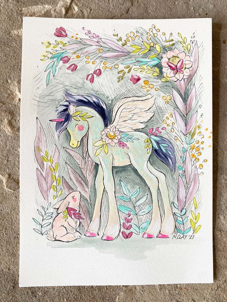 5x7” *Original* Blue Unicorn Sketch