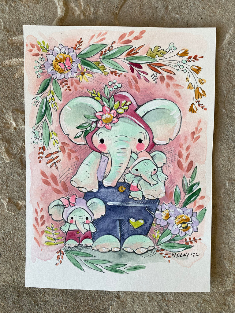 5x7” *Original* Elephant Family