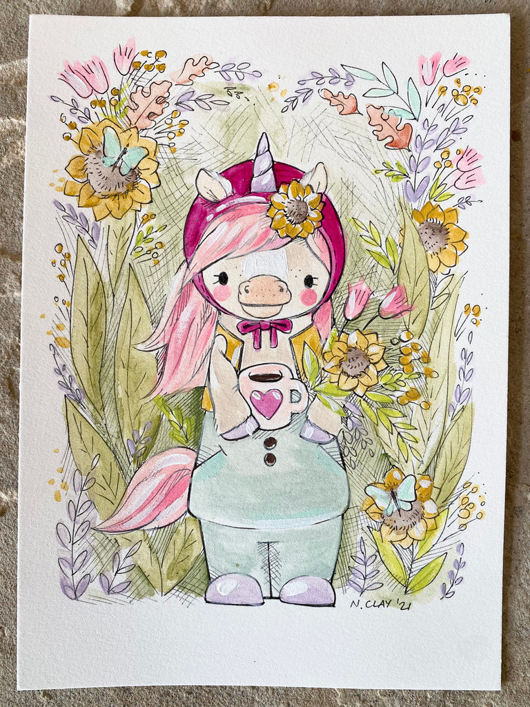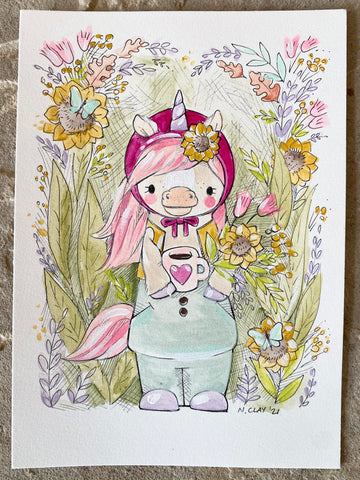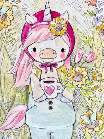 5x7” *Original* Pink Unicorn Sketch