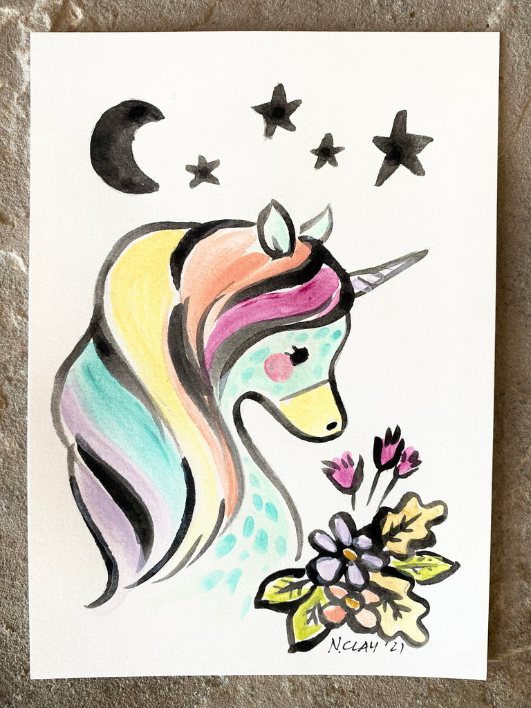 Archival ink and acrylic on 140 lb / 300 gsm Cold Press Watercolor Paper