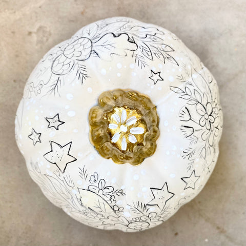 Pencil and archival ink. Sealed with Liquitex Matte. Metallic Gold Stem.