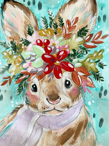 7x10” *Original* Winter Jackrabbit with Crown and Scarf