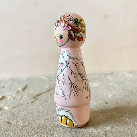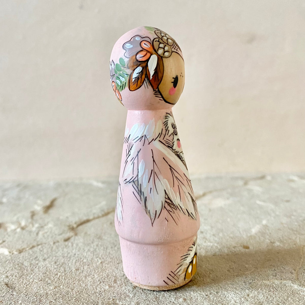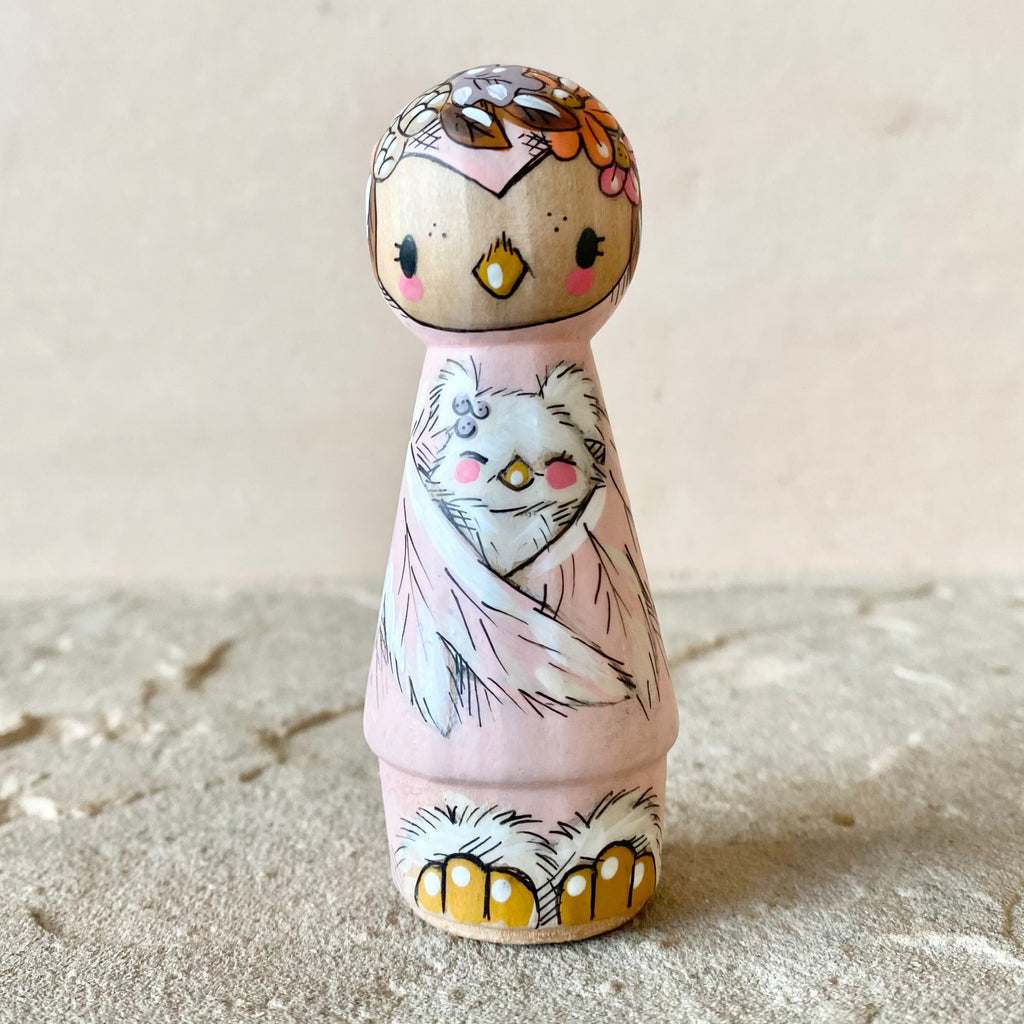 *Original* 3.25” Pink Owl holding Owlet