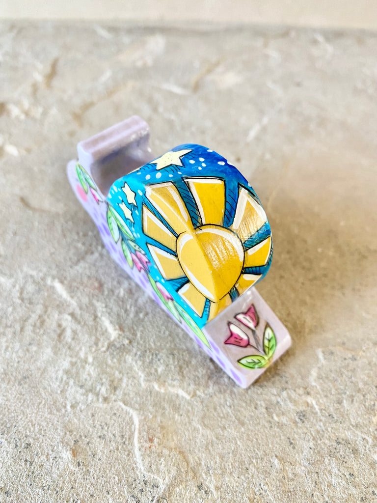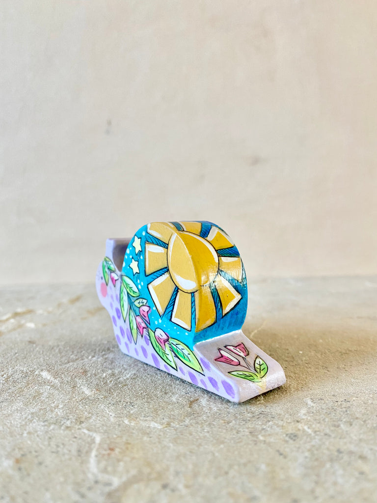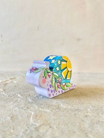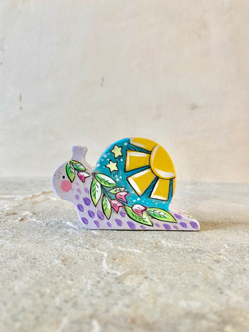2”h x 3”w Snail with Sunshine, Moon, Stars, and Florals