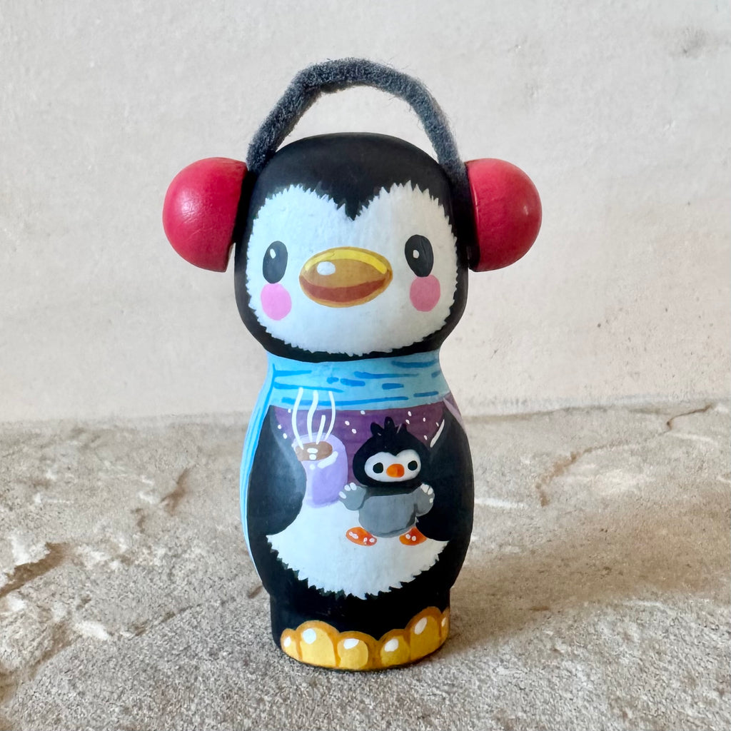 3” Winter Friend: Penguin with Cocoa and Chick (Purple)