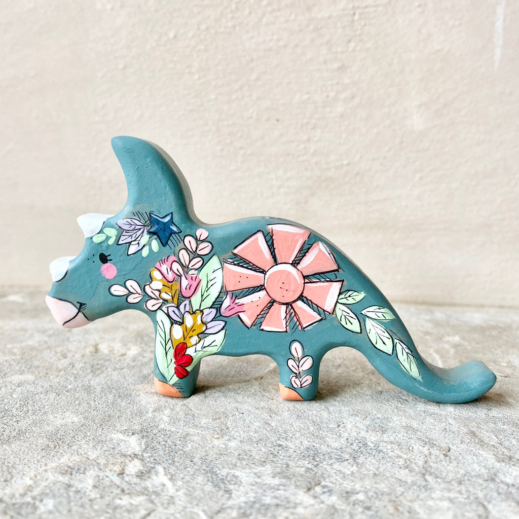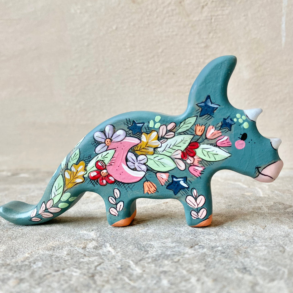 *Original* 4.5”w Dinosaur: Slate Triceratops