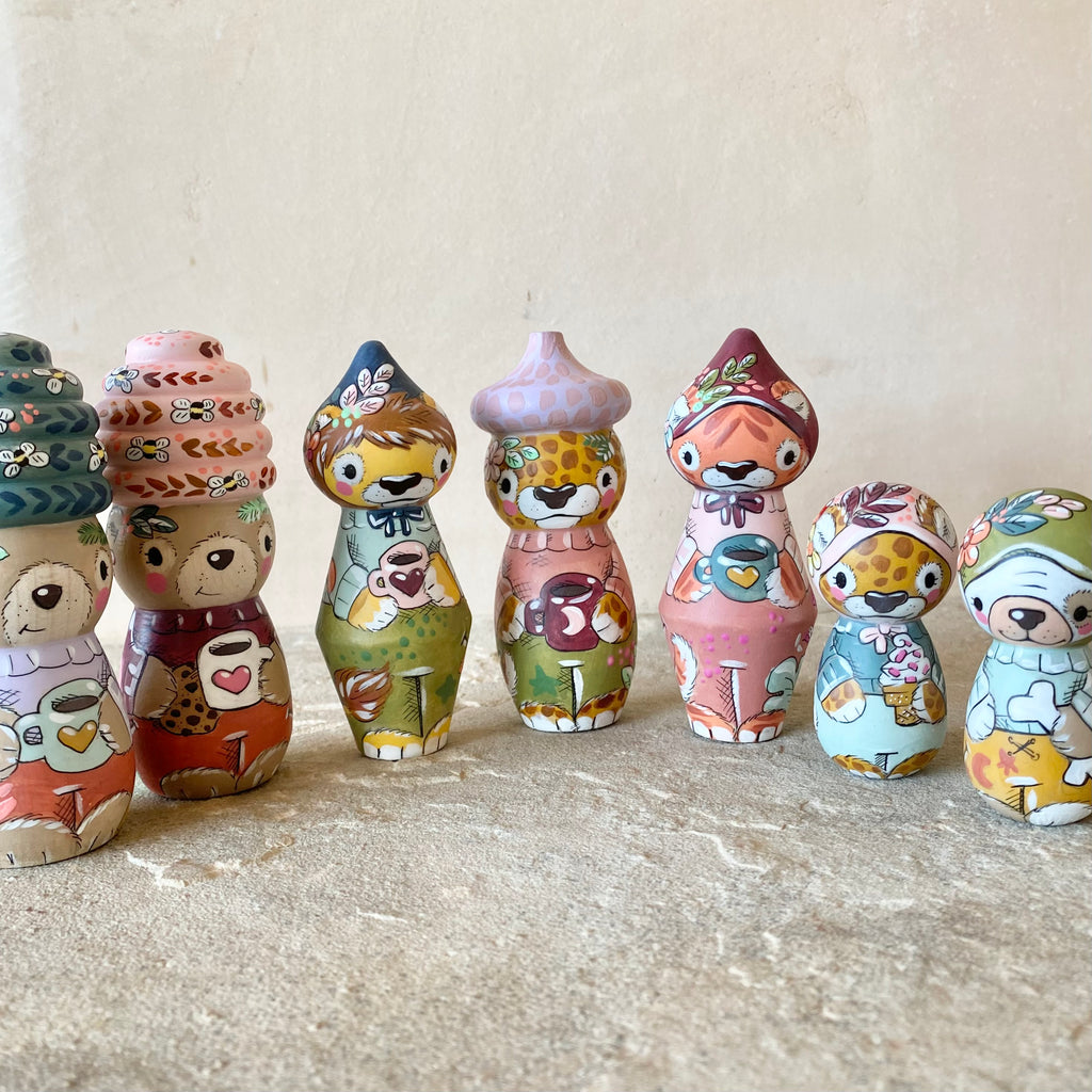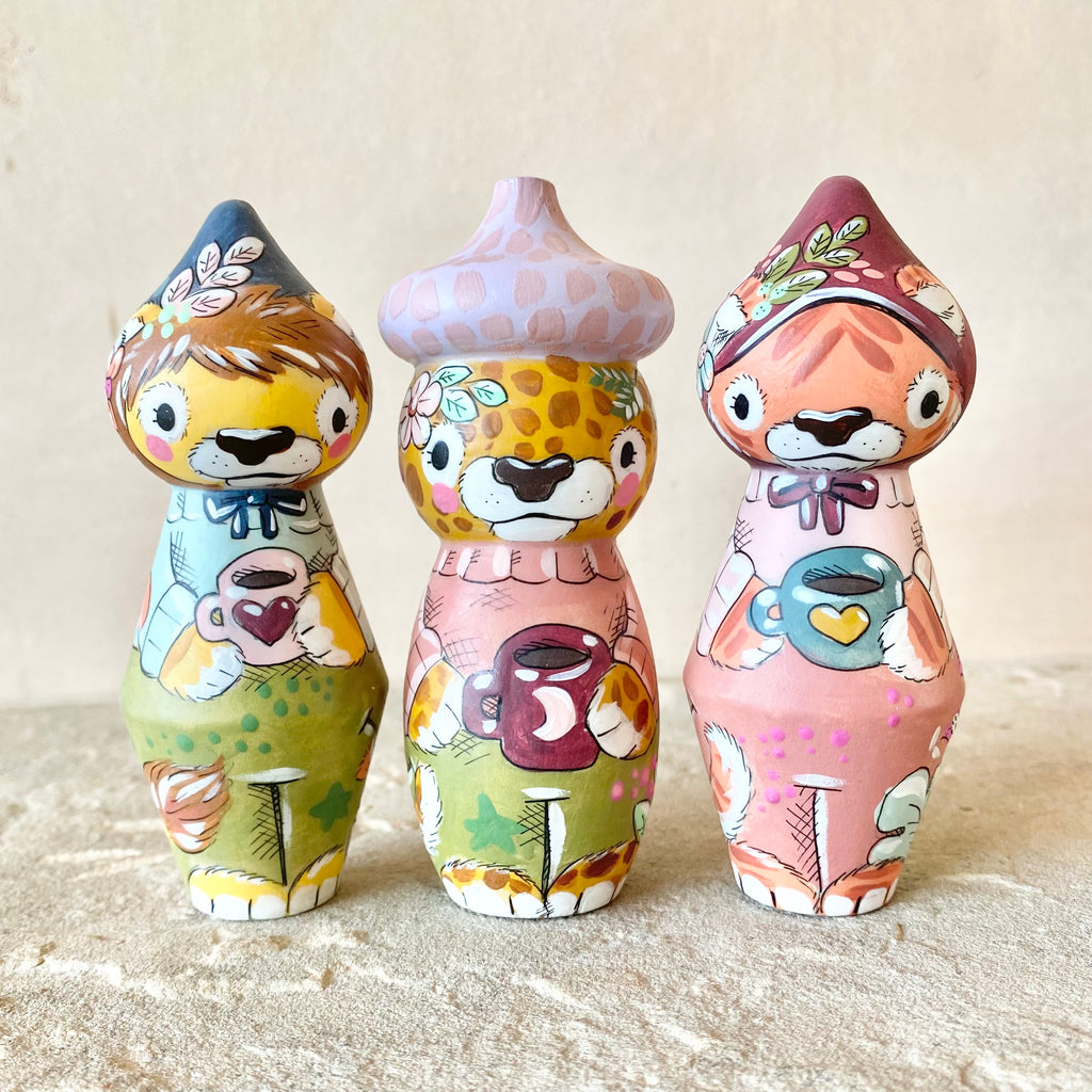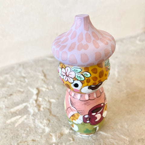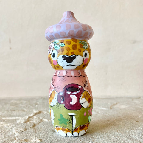 *Original* 4” Acorn Hat Cheetah with Coffee ☕️