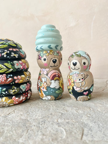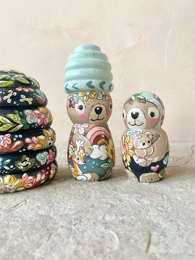 Set of 2: 3.75” Beehive Box + 2.75” Bear Mama