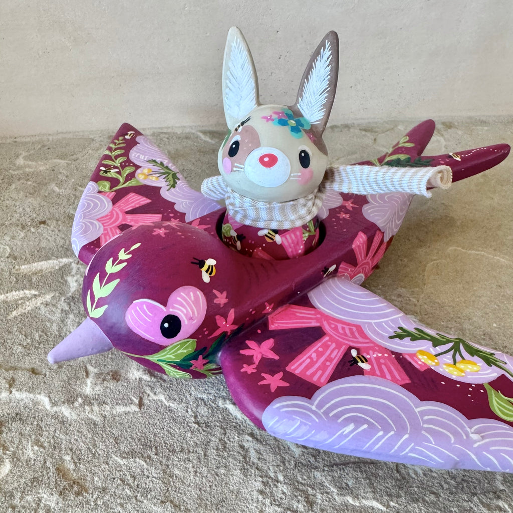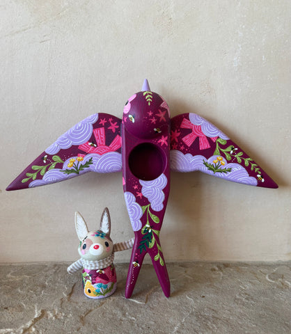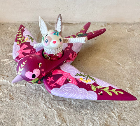 Set of 2: 3” Bunny Rider with 8” Bird (Dark Cherry)