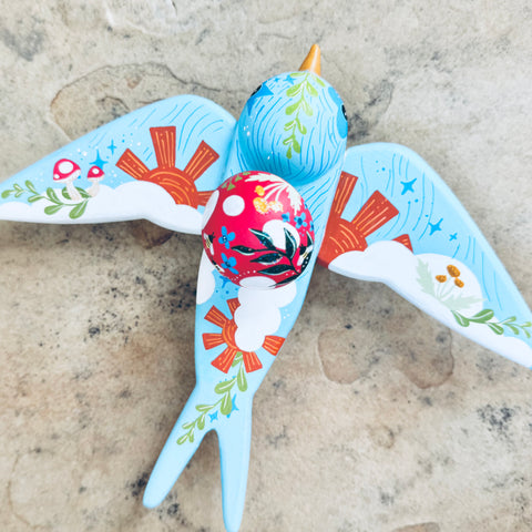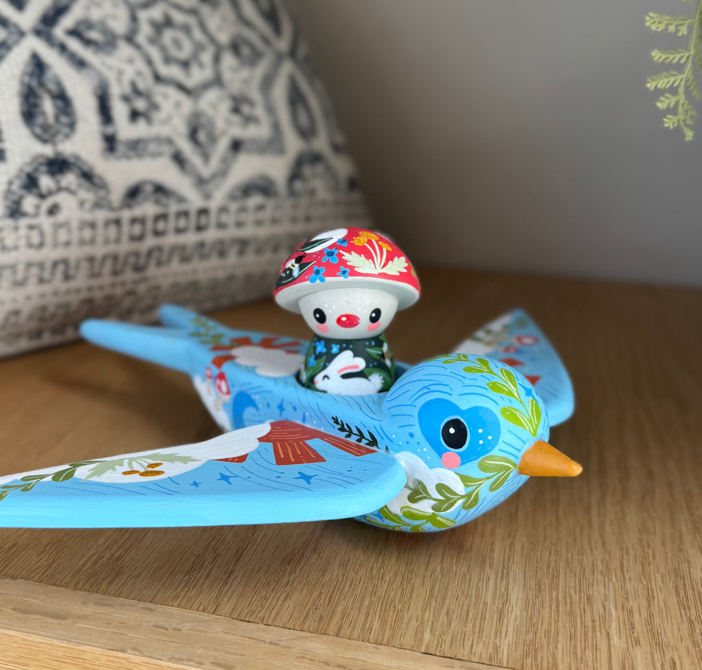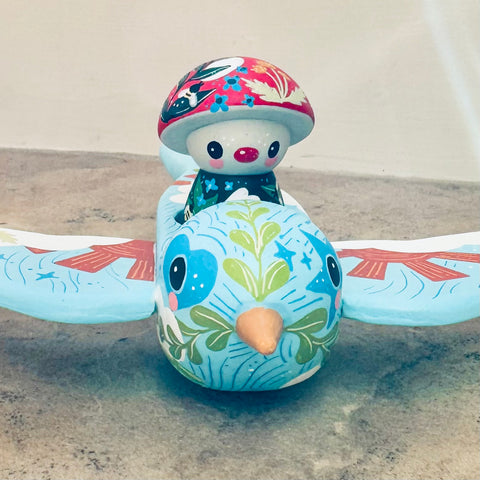 Set of 2: 3” Mushroom Rider with 8”Bird